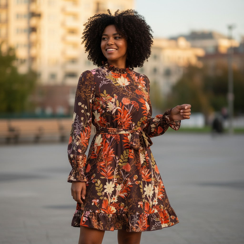 Step out in style with this playful mini dress featuring a classic shirt collar and a half button front for easy, versatile wear. The ruffle hem adds a fun, feminine touch, while long sleeves make it perfect for those cozy transitional and cooler days. Embrace timeless charm with a spirited twist! Polyester/Cotton